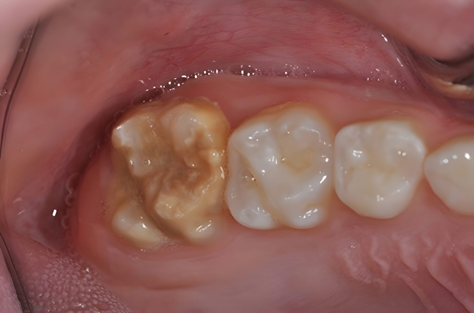 - Rascher Substanzverlust: Schmelz bricht beim Kauen oder Putzen ab